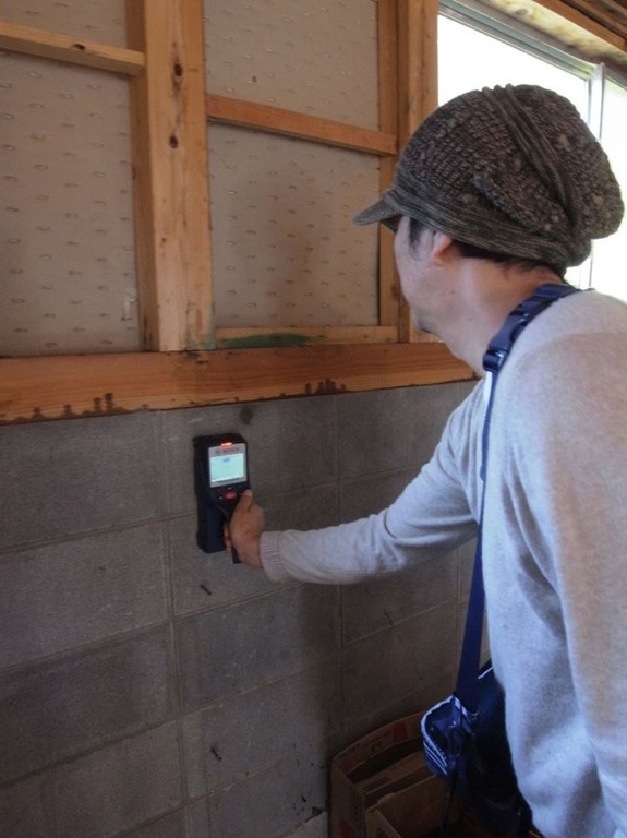 基礎部に鉄筋が配置されているか専用の器具で検査しました。OK!