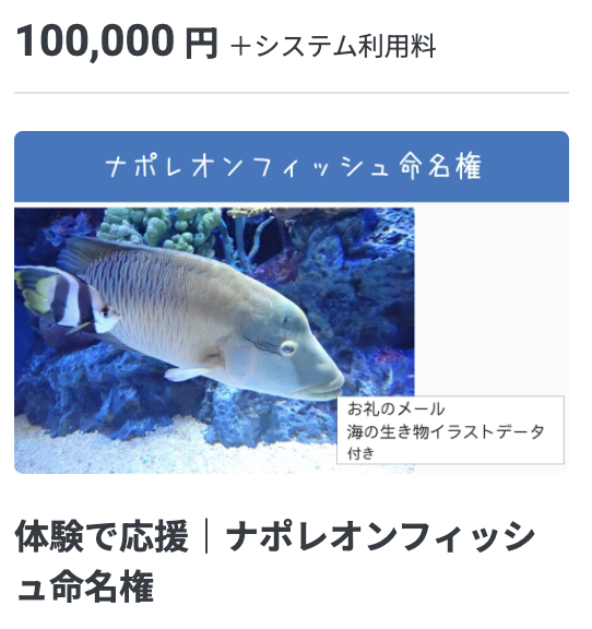 ▶︎体験で応援|ナポレオンフィッシュ命名権をご支援されたい方は、下記の画像をクリックすることで、該当のリターンの支援に移動します。