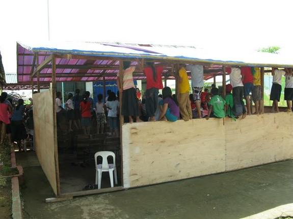フィリピン中部のレイテ島、サマール島を中心に世界的・歴史的に最大級の(風速105M)の台風が襲い、死者は1万人、住宅や構 造物 の約 70~80%が破壊されました。学校は計3000校中6000教室が全壊、15000教室が半壊し使用出来なくなりました。約80万人が自宅を放棄するこ とを強いられました。1000人以上の死体がレイテ島の中心都市タクロバンで氾濫した水に浮いている、死体を食べて飢えをしのぐ など の報道があり、悲惨な状況でした。