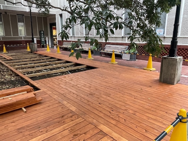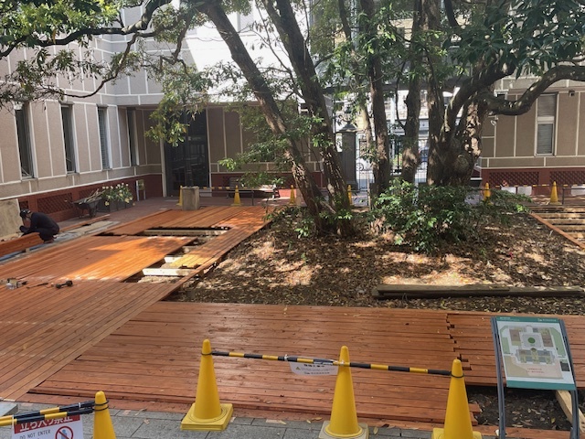 「たまくすの木」バリアフリーデッキ工事の進捗のお知らせです。