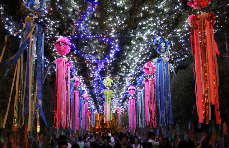 天の川を模した全長27mの「笹トンネル」が人気で、3万灯のイルミネーションや吹き流しで飾った約400本の笹に、子どもたちや来場者の皆様が「夢」や「願い」を込めた短冊を結えます。
