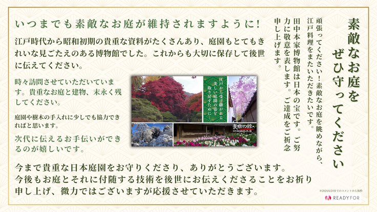 少しでも多くの方々にこのお庭を再建し、未来へ繋いでいく仲間となっていただきたく、