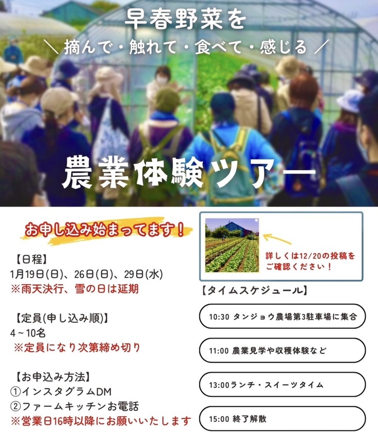 ※昨年より体験ツアーを開催しております。皆様が休憩していただけますスペースを整備いたしました。これからも「農の素晴らしさ、楽しさ」をお伝えして参ります。
