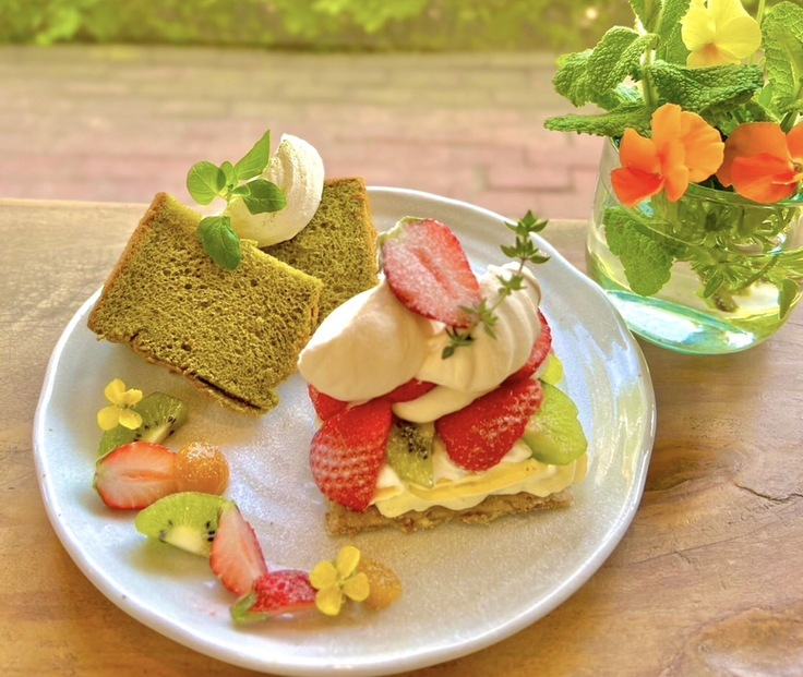 ※気候の良い時は緑溢れるテラスのお席でお食事やカフェタイムをお楽しみいただきます。
