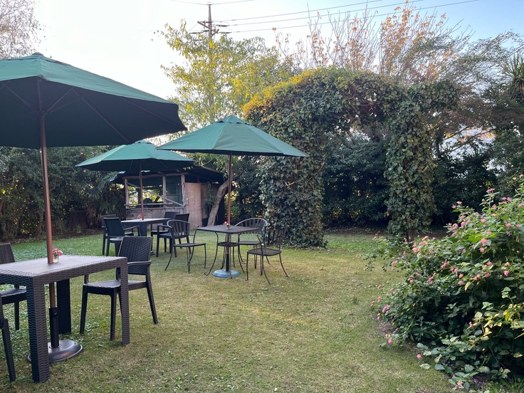 暖かい日にはキッチン庭のお席もご利用くださいませ。