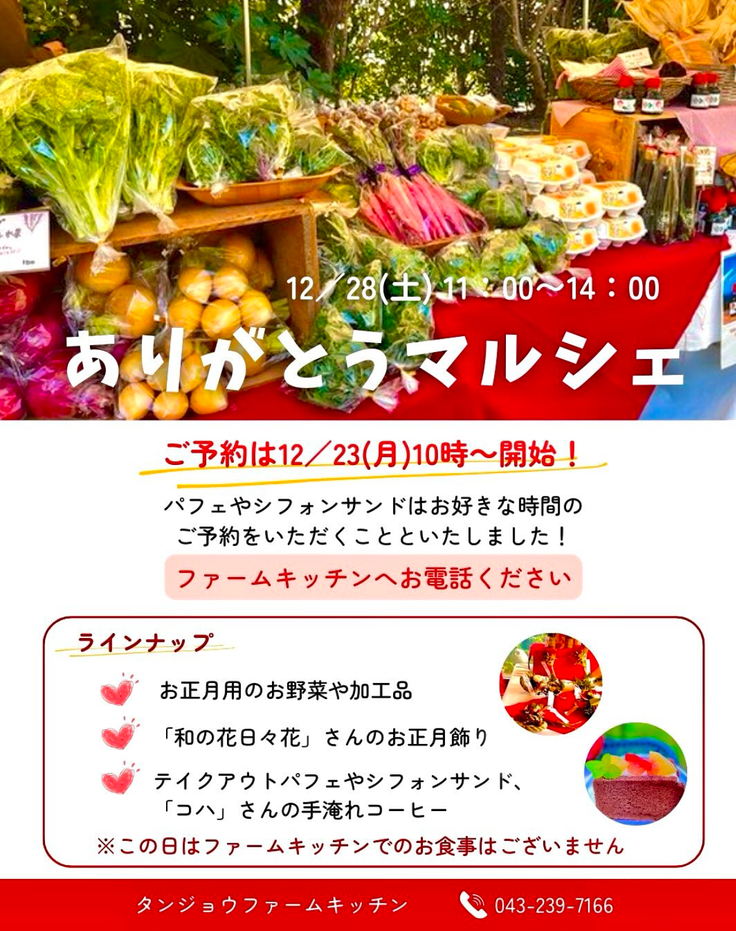 2024年を締めくくる「ありがとうマルシェ」。農場・キッチンスタッフ一同でお待ちしております!