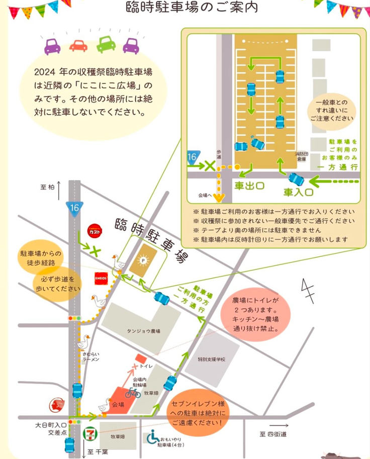 ◎この日の駐車場は「秋の収穫祭」と同じ「大日町・ニコニコ広場」となります。