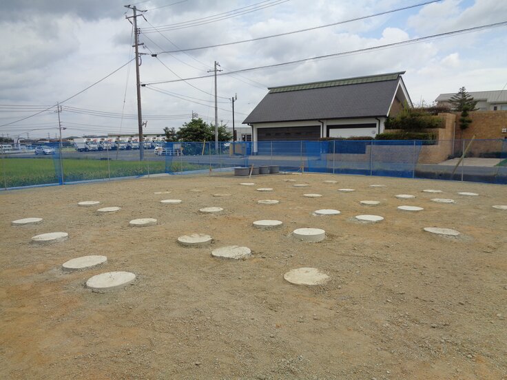 7月2日の地鎮祭から3か月が経過しましたが、写真のとおり地盤改良工事が無事完了しました。