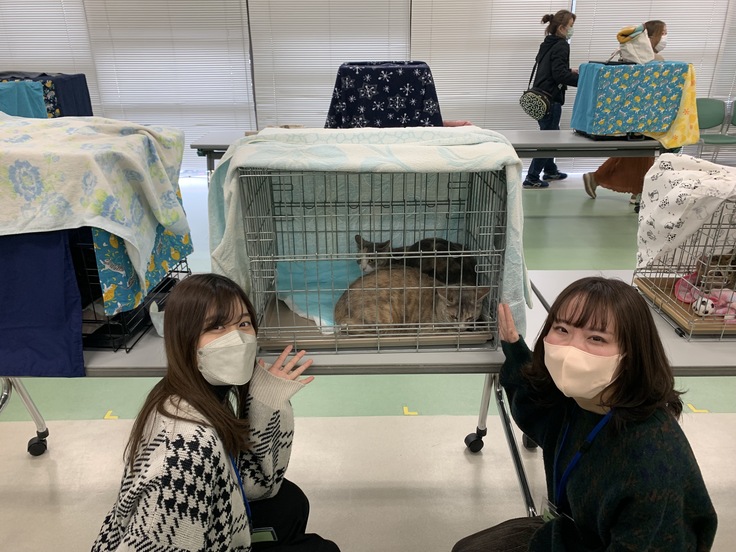 譲渡会上にて学生ボランティアさんと・・・