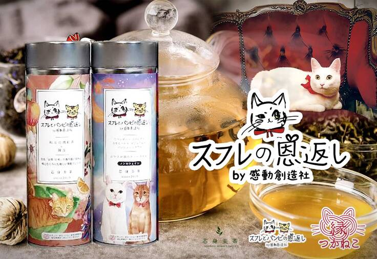 63匹多頭飼育崩壊からレスキューされた保護猫「スフレちゃん」が皆の愛に支えられてる「幸せな日常」をテーマに、フレーバーなどは一切使わず、厳選茶葉と花と果実だけを使い、「自然」「安心」の本物の美味しさをご堪能いただけます。