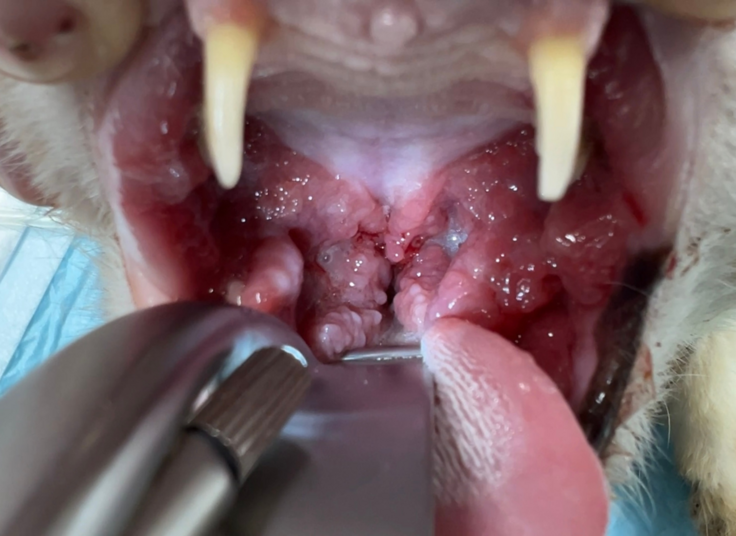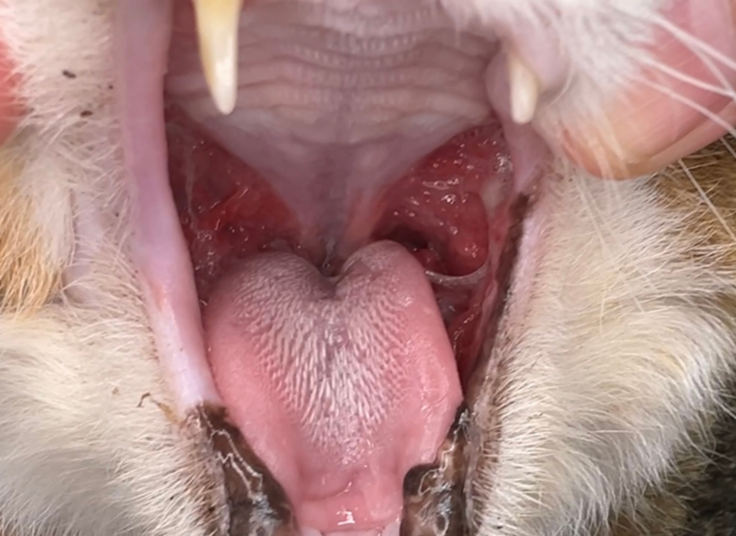 【重度尾側口内炎によりのどに強い炎症がある猫さん】