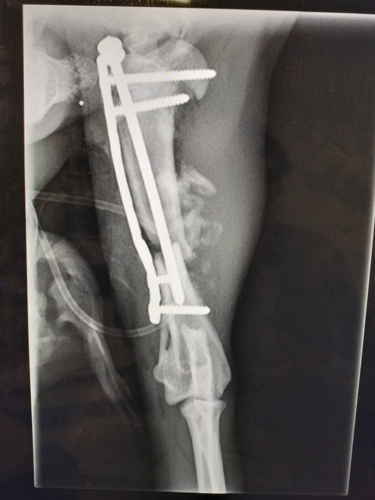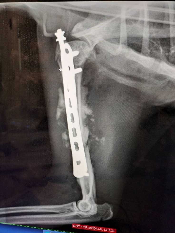 骨折した状態で市に収容されていましたが、院長が相談を受け、当団体で引き取ることになりました。