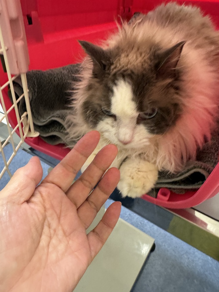下にいる猫は3階からおちて道にうずくまっているところを保護されました