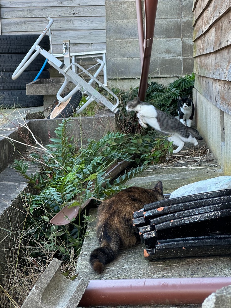 人々が避難しお外の猫たちも暖をとる場所が限られています。