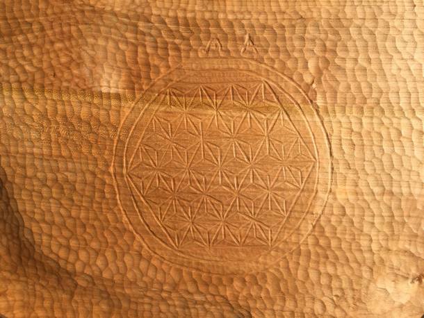 伝統的な和柄の「麻の葉」模様を彫刻しました。