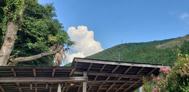 工房からの景色は自然いっぱいで、疲れを癒してくれます。夏らしい雲も見ることができました。