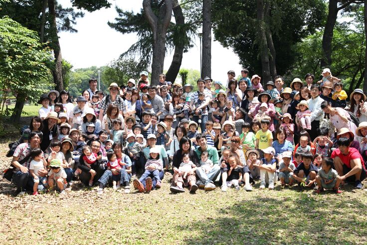 2016年5月。初めてふたごじてんしゃの試乗会(当時はオフ会って呼んでた)をした日です。FB、アメブロ、Twitter、双子ベビーカーを押す姿をみて声をかけたママ達が、大阪服部緑地に41組集まりました。
