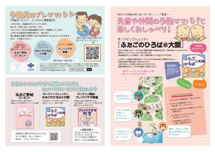 右:年齢問わず多胎家庭に案内してもらう広報チラシ