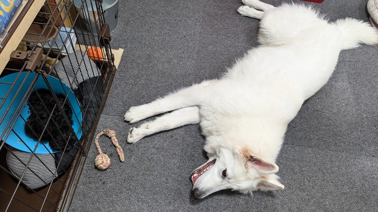 ぼるが一番好きなロープを持ってきて遊んでもらえるのを待ってます笑