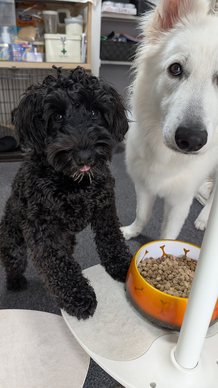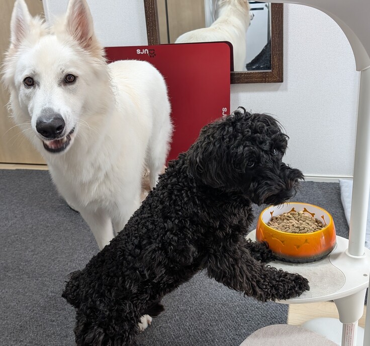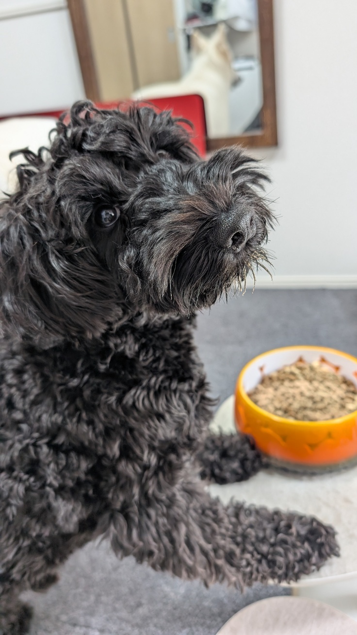 ぼるは自分の45gは完食済。大型犬の200gを食べようとするって(>_<)