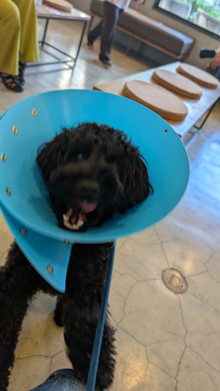 まだしばらくはエリカラ(エリザベスカラー)生活は我慢してねー