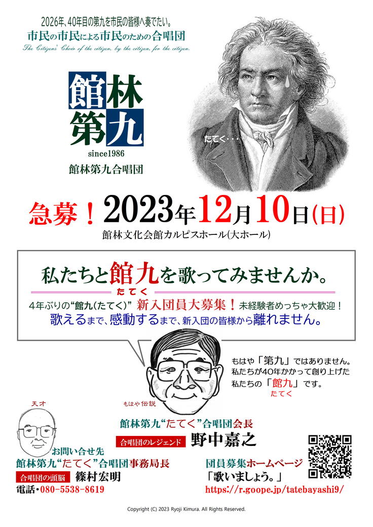 「館林の第九」を東毛地域の応援団に成長させるため、引き続き応援よろしくお願いいたします。