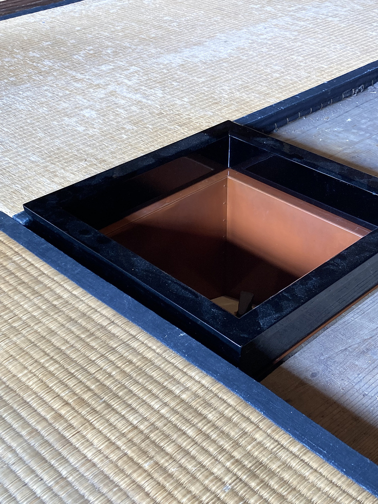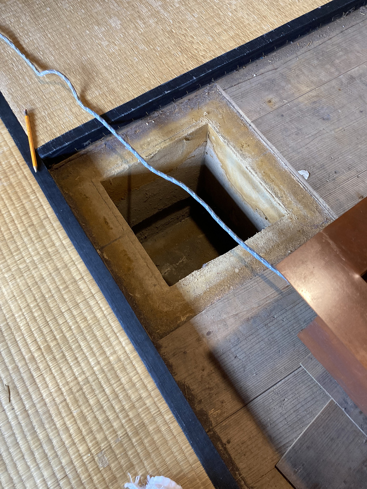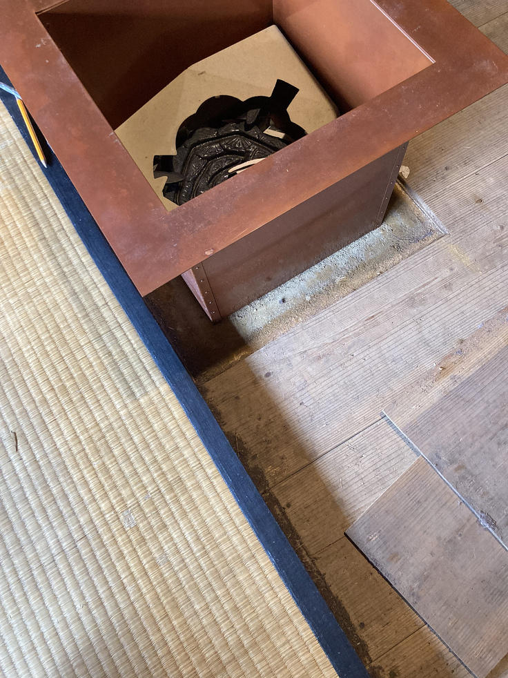 この茶室にはもともと炉が切ってあったのですが(おそらく建てられた明治時代に)、何故かサイズが小さく作られており買っておいた電熱炉がはまりませんでした。