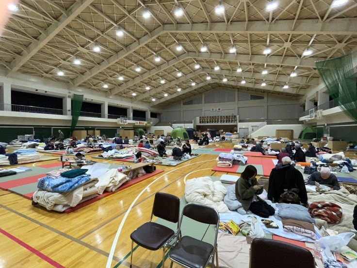 田鶴浜体育館は避難所となり、多くの方が避難しました。