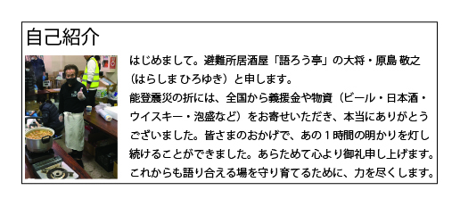 そんな地震から1年半以上経った今、リニューアルした形で語ろう亭を復活させます。