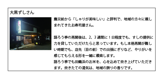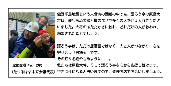 そして語ろう亭の復活は、今や地域全体の願いです。
