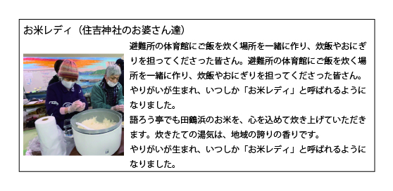 そして能登の復興と田鶴浜の新しい発展につながれば。