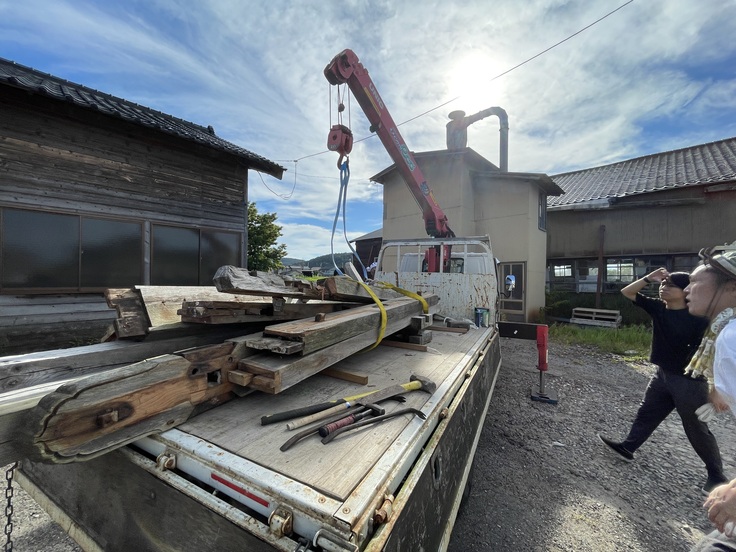 解体した部材は、同じ田鶴浜町内にあります『秋山木材』へ。