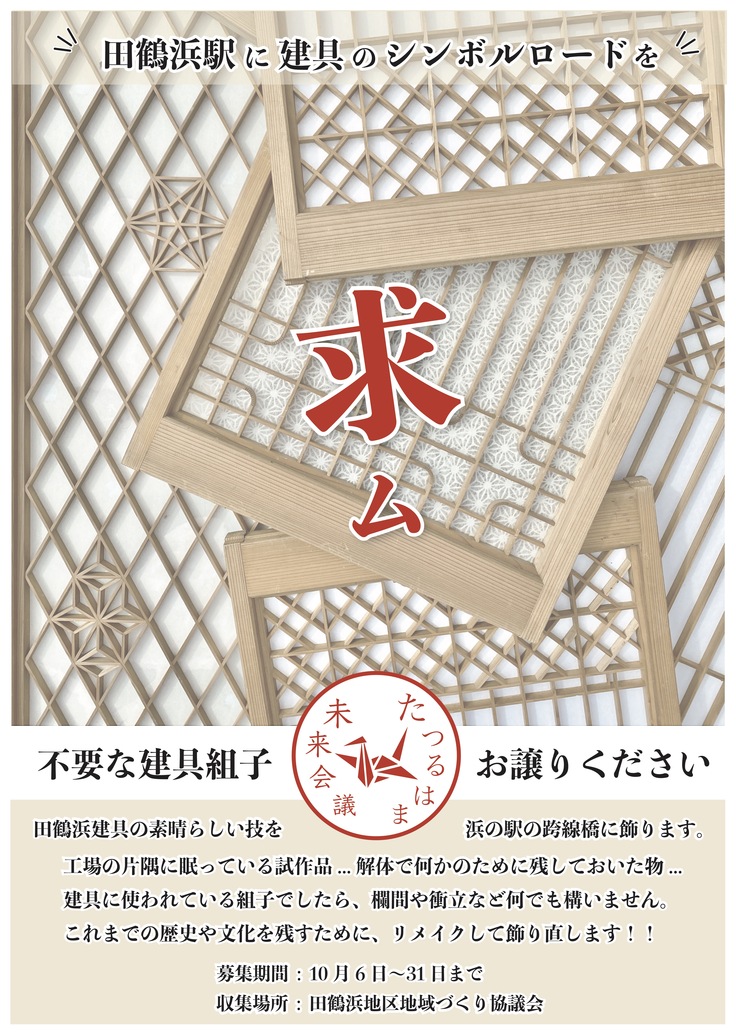 飾られるリメイクされた建具組子は、町民の皆さんやご支援いただいた方々にも来て頂ける企画も考案致しました!