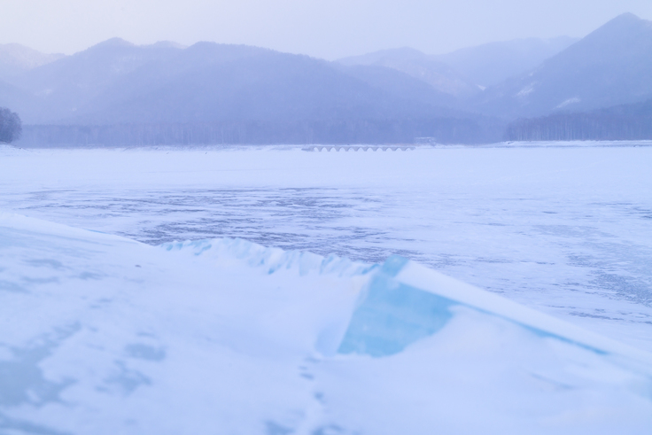橋が立つのは、冬になると最低気温が氷点下20℃を下回る厳寒の土地。湖に張る氷の厚さは60センチを超えます。