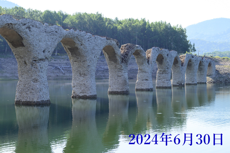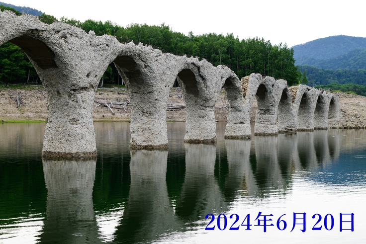 さて、すでに報道等でご存じかもしれませんが、先週末にタウシュベツ川橋梁の壁が一部崩落しました。これまでに起きた自然崩落はすべて4月の雪解け時期のものだったので、6月末になってから崩れたのは初めてのことです。