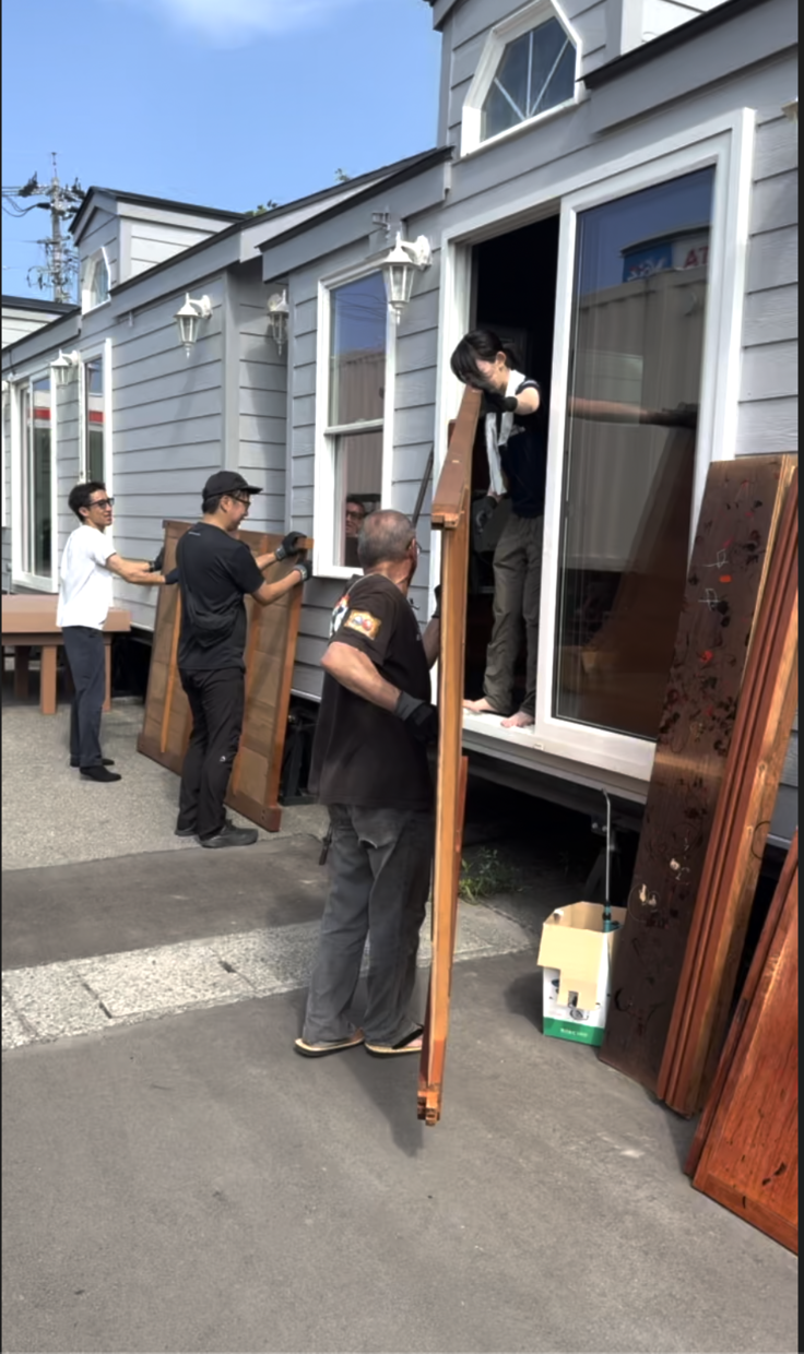 新しい上塗り工房となるトレーラーハウスへ入れ込み、組み立てていきます。
