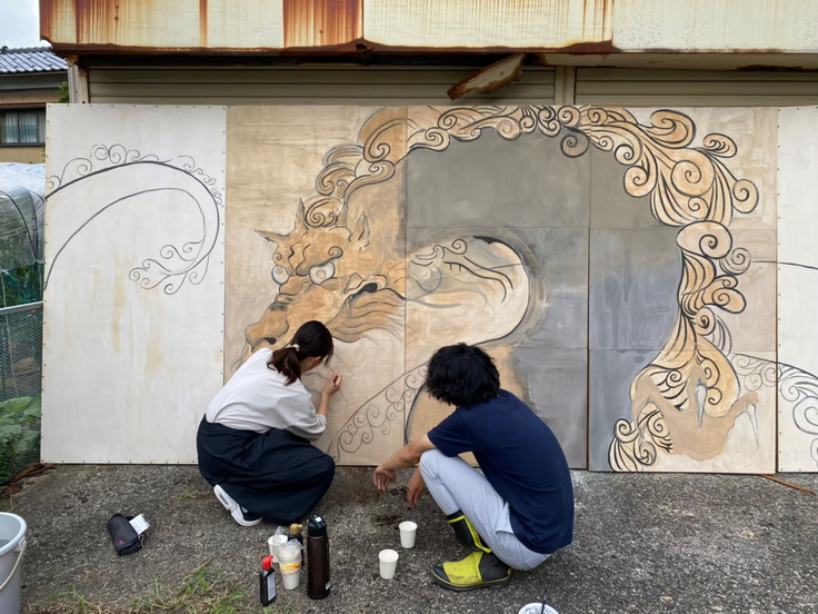 竹田の龍伝説を100年後にも残すため、地域の方と共に、現在の証言者として絵画を創るプロジェクト。地域の材料で作る絵の具のワークショップを行いながら、絵画を創作します。