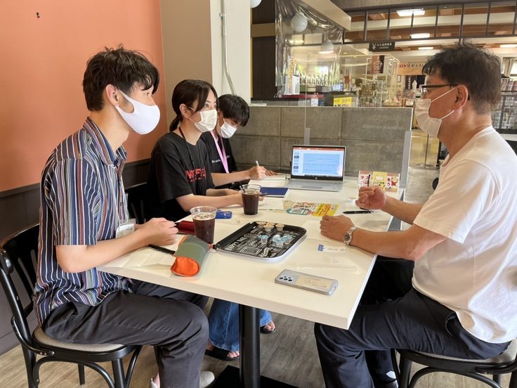 夏キャンプの活動では竹田を含む坂井市丸岡町内にある中小企業に伺い、社長に100の質問をする様子を動画に収め、字幕等簡単な編集を施しました。この動画は、後日私たちが制作するウェブサイトに掲載する予定です。