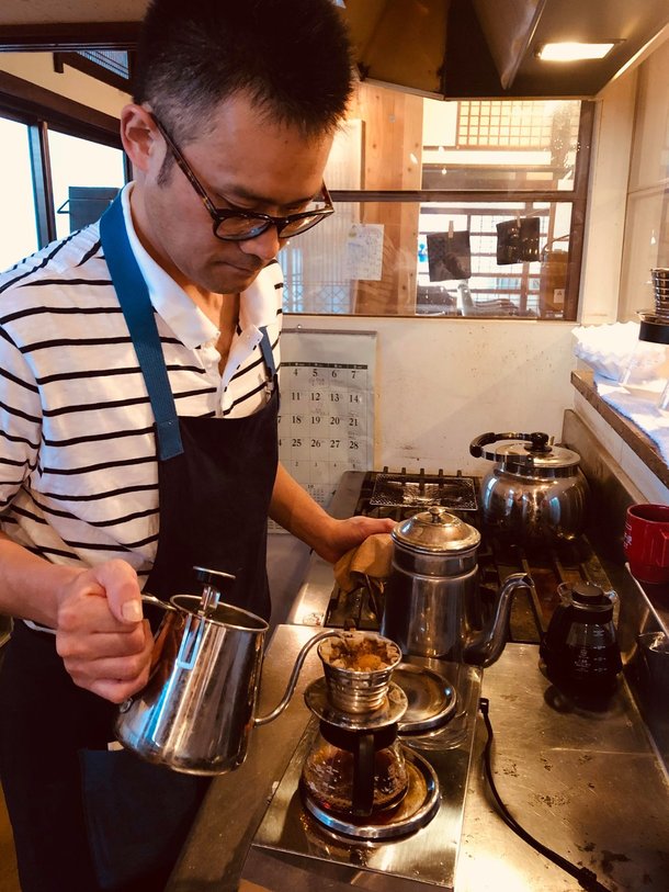 昭和初期の元郵便局舎に、カフェ 、小さな焙煎所があります