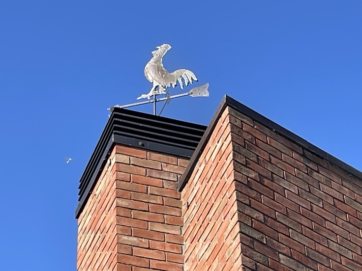新築の折には、風でぐるぐる回っていたというのです!(風見鶏ですから)