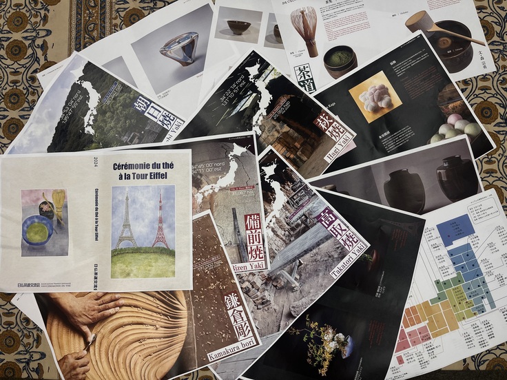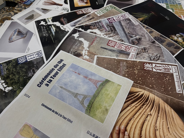 井上さんのほか、今回エッフェル塔茶会に参加する作家は、日仏茶道交流会の主メンバーである、朝日焼の松林豊斎、備前焼の木村桃山、萩焼の田原崇雄、高取焼の亀井久彰に加えて、鎌倉彫博古堂の後藤圭子様と後藤尚子様、虫明焼の黒井博史様、華道郁生流の3世家元・澤井雅恵様、そして、加賀藩御用菓子司金沢森八の19代若女将・中宮千里様が参加されます