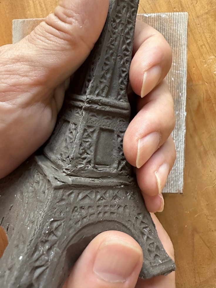 今日ご紹介するのは、現在鋭意制作中になっている、備前焼作家・木村桃山 @hidewasabi の作になるエッフェル塔の形の香合です。