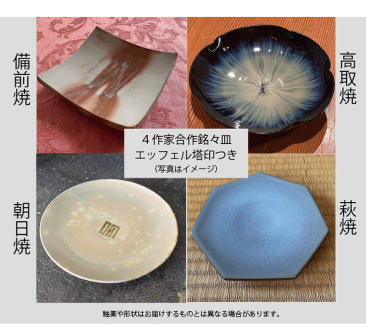 このお皿の裏面にエッフェル塔茶会の為に用意された刻印を押捺します。木箱には4作家による箱書をつけさせていただきます。
