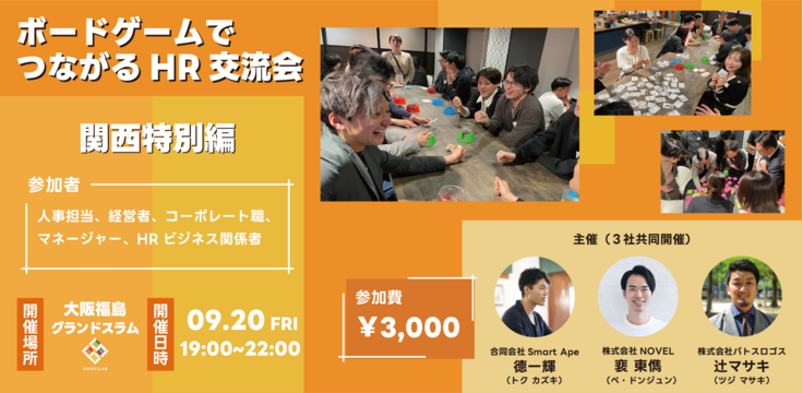 ボードゲームでつながるHR交流会 関西特別編【SmartApe×NOVEL×パトスロゴス3社共催 人事イベント】