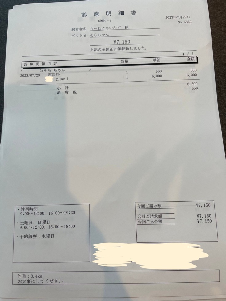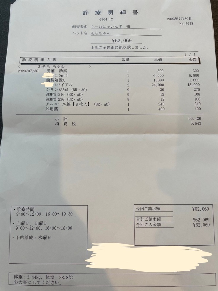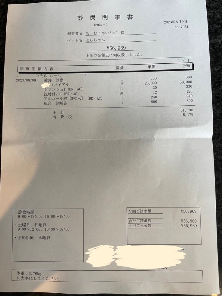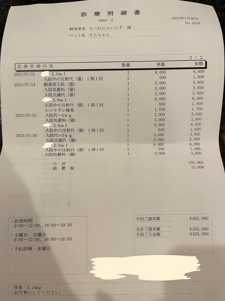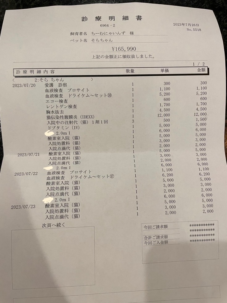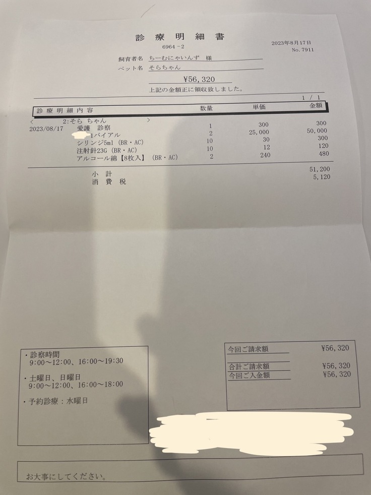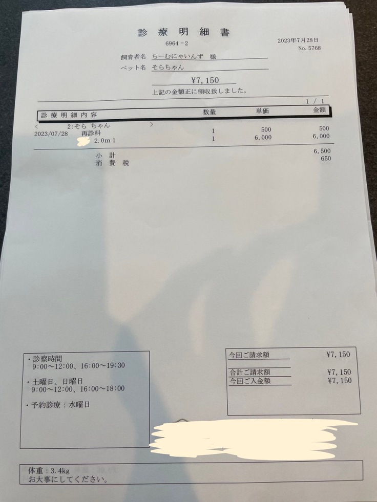▶︎ 4.掲載している資料についてページ上に掲載している診断書や診療明細書などの資料は全て動物病院から掲載の許諾を得ております。