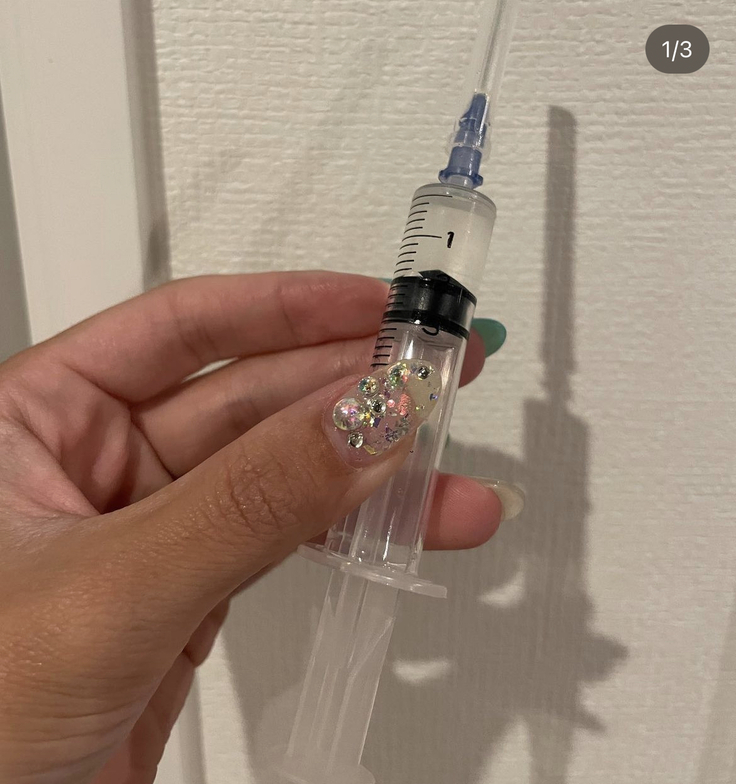 手でじんわり温めてから注射をしています。