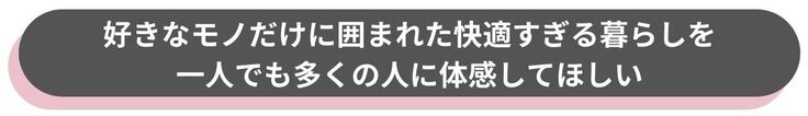 「好きなモノだけに囲まれた(本気で)快適すぎる暮らし」でした。