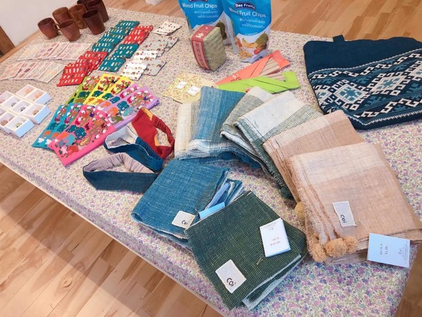 花蓮てまりをメインに、他にも自然染めで染めたブランケットや、モン族の方達のオリジナル刺繍、ADDP(アジアの障害者活動を支援する会)さんのクッキーなど、日本では滅多におめにかかれないものが並びました!