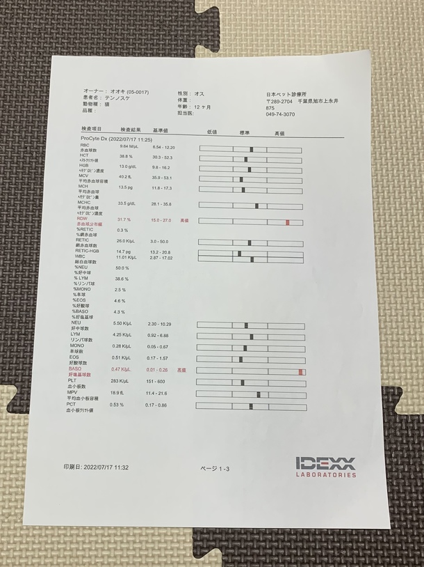遅くなりましたが、7月17日の血液検査結果です。