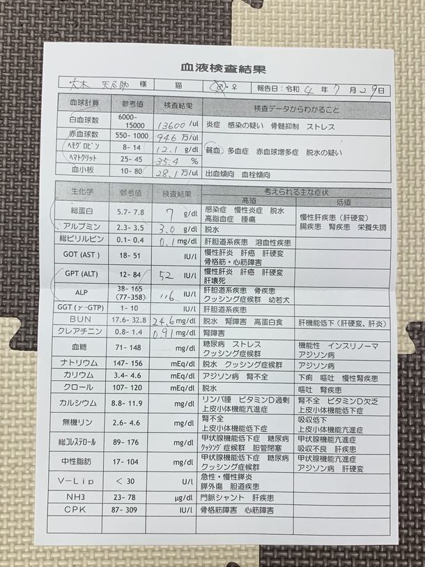 7月29日 血液検査結果